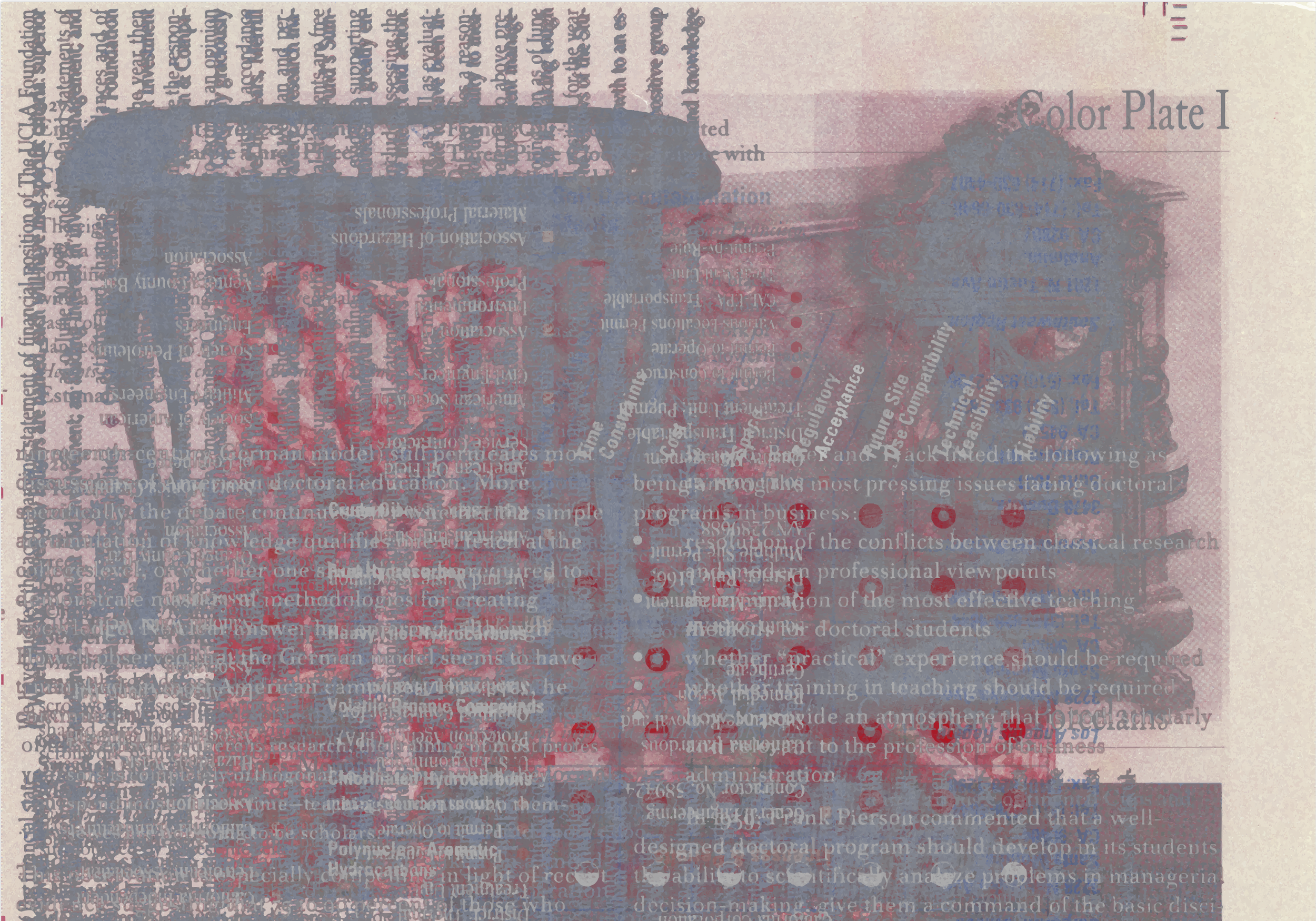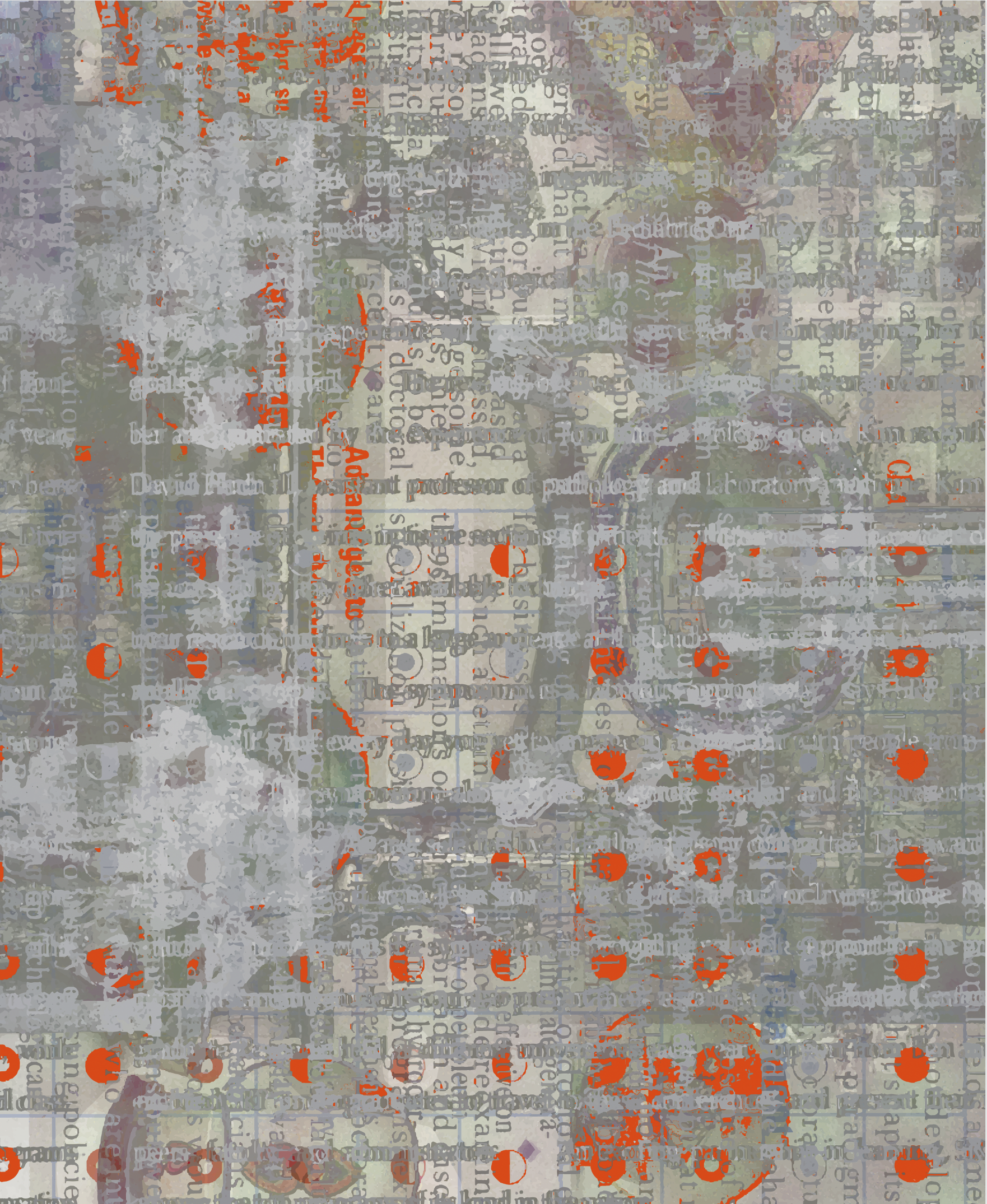 I was fascinated with how layered lines of type became fragments, interacting with mostly unrecognizable images of ads, book plates, and other subjects. Unwittingly, this emerged as my visual language. I called this work "well-involved vacant structures," after seeing a make ready fragment with words relating to firefighting. "Well-involved" suggested the multitude of layered imagery, whereas "vacant structures" implied the abstract nature of mostly indecipherable messaging ephemera.