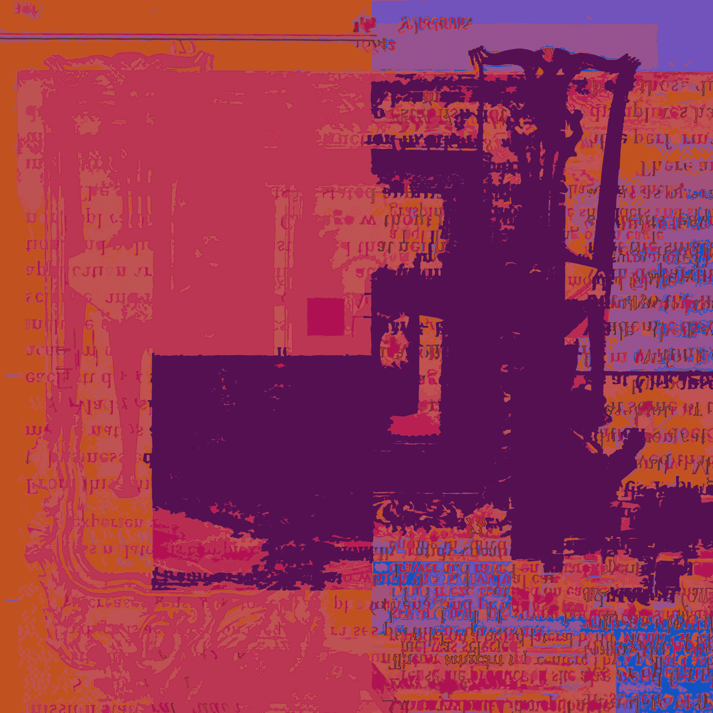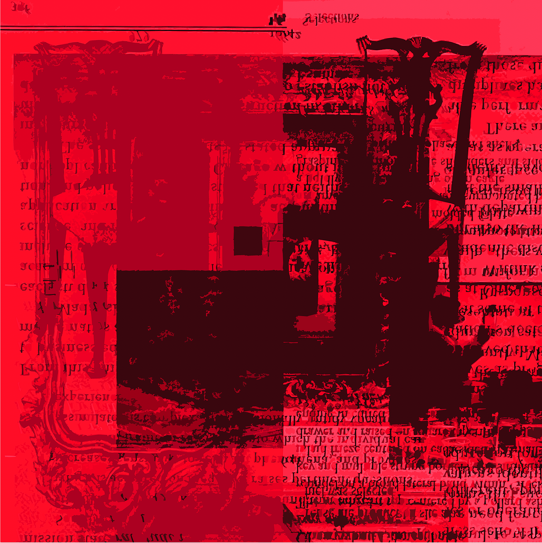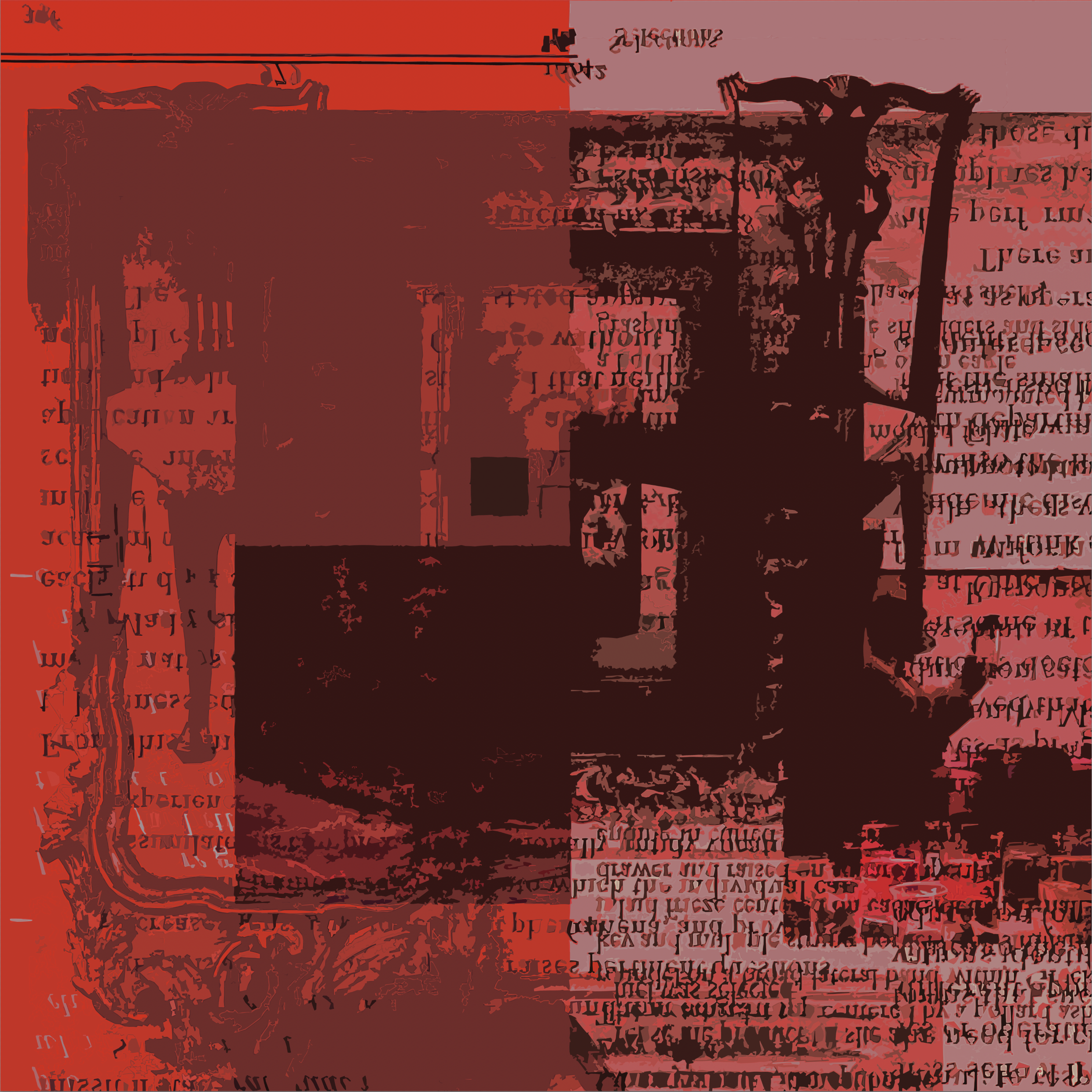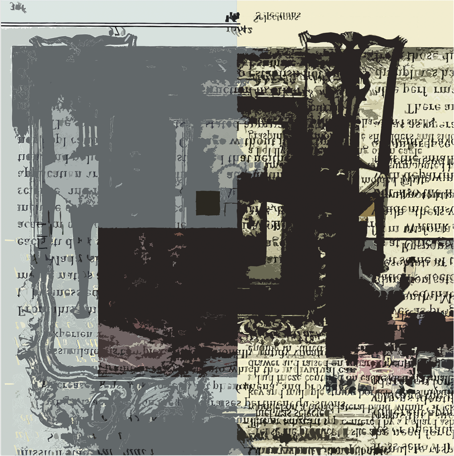 Using typography in my design practice, I was fascinated with how layered fonts became fragments interacting with images. This became my visual language. I called this work "well-involved vacant structures," after seeing a press sheet fragment with words relating to firefighting. "Well-involved" suggested the multitude of layered imagery; "vacant structures" implied the abstract nature of mostly indecipherable messaging.