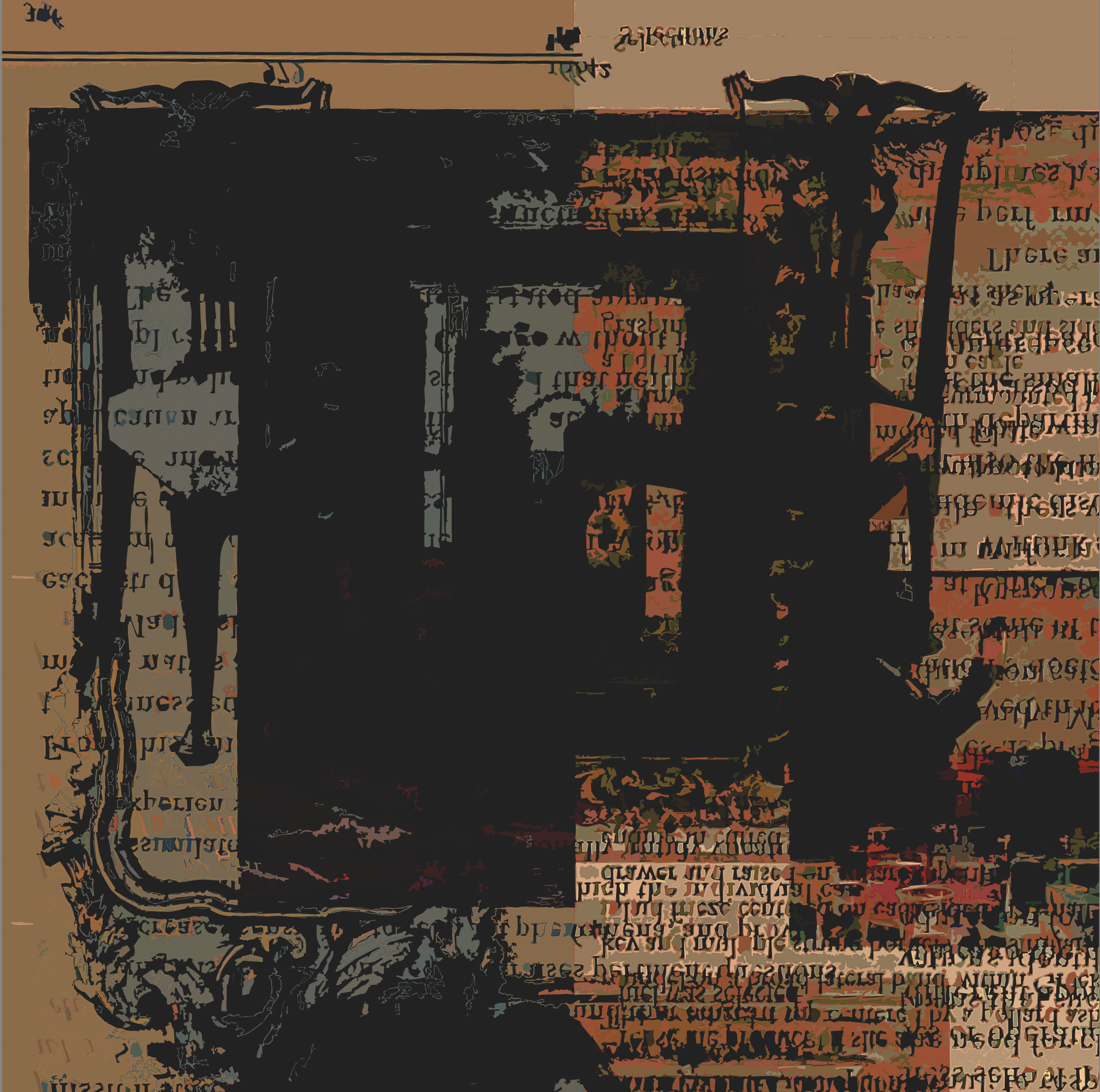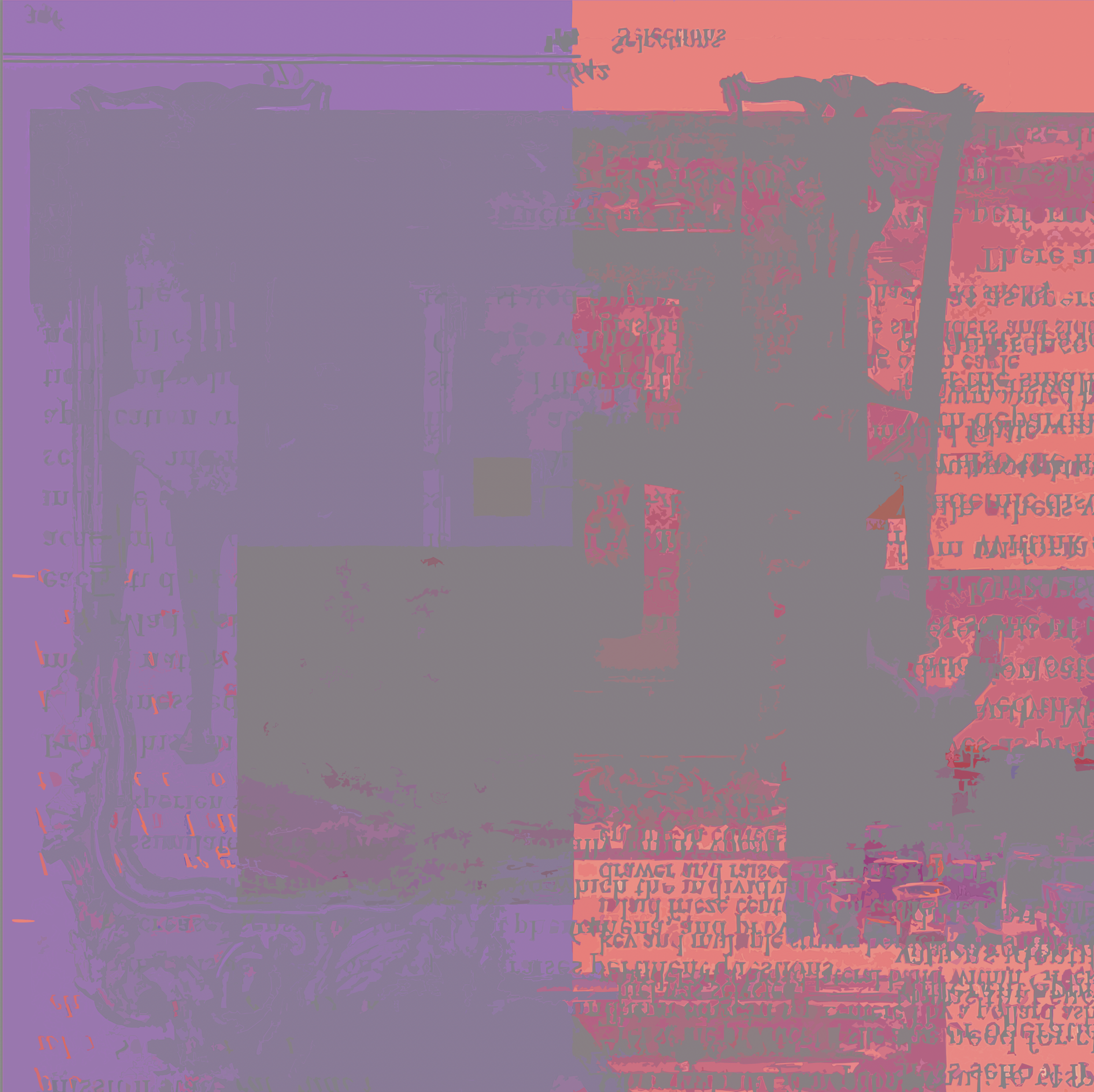 MARKS, (Make Ready Suite Series Seven) 2019-2023. #1, 28X32. Printed dyes, encaustic on canvas mounted to board. 99 digital iteratives. Prints available upon request. Limited edition of (9) each.
